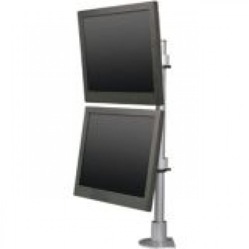 Save desk space by elevating two monitors above the work surface with this handy mount. Allows independent pivot and tilt of each monitor. Position at any height along the included 28" pole.