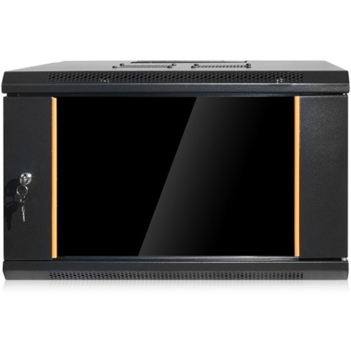 Elegant and secured WMZ series swing-out wall-mounted cabinet by CLAYTEK. The easy side panel access and swing-out design are convenient to perform routine maintenance, but also can be locked to prevent unauthorized access. Three ways, top, bottom, and rear cabling tunnels enable data and cable routing. WMZ series incorporates optimal cooling design. The partially vented frames and two optional AC fans that can be put on the top panel give the wall-mount cabinet excellent air ventilation. Heat-treated glass door provides extra strength and able to silkscreen logos, marks, and labels to boost product image.