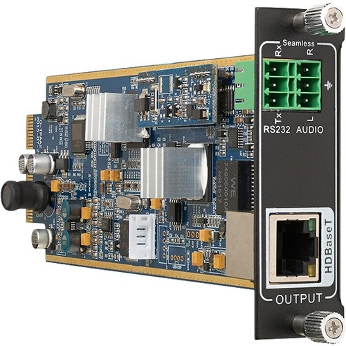 The KanexPro FLEX-OUT-HDBT is a seamless one output HDBaseT card with de -embedded PCM analog audio output designed for FLEX-MMX12 chassis supporting video resolutions up to 1080p/60 HD and PC resolutions up to 1920x1200@60Hz. The card is compliant to HDCP and supports EDID management from the switcher. Powered over Cable (Ethernet)This flexible card requires a Receiver which can be remotely connected up to 230 feet to the HDMI display andsupports PoC feature, which sends power over Ethernet (cable) to the receiver hence no, power supply needed. Applications:Ideally used in command and control centers, simulation centers, large AV conference rooms for up-to-second viewing of critical information and high -resolution imagery.