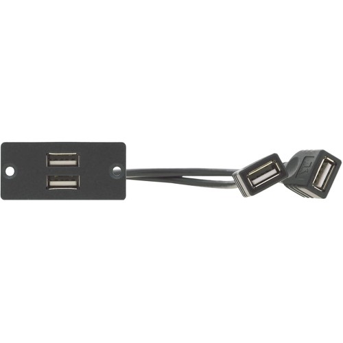 The WU-2AA is a single wall plate insert with two USB 2.0 Type A ports and two cables with USB Type A connectors at the rear. Front Connectors - 2 USB-A (F). Rear Connectors - 2 USB-A cable (F).