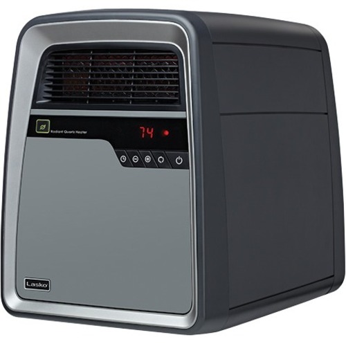 Lasko Heat Exchanger Infrared Quartz Element with Copper Heat Technology Heater. Multi-Function Remote Control Digital Controls Programmable Thermostat 8-Hour Auto Shut-Off Timer Built-In Safety Features: Cool-Touch Housing, Overheat Protection 1500 Watts of Soft Comforting Warmth 2 Heat Settings High Heat, Low Heat, Plus Auto (Thermostat Controlled) Recessed Casters for Smooth Mobility Easy-Vacuum Filter for High Efficiency Convenient On-Board Cord Storage Fully Assembled ETL Listed Save-Smart Technology