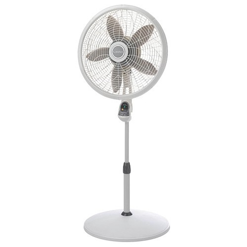 The Lasko model 1850 Performance pedestal fan is equipped with a multi-function remote for easy and convenient use. The 5-paddled 18" fan blade is powerful enough to cool even the largest home spaces. Between the simple "no-tool" assembly and the electronic auto-off timer this fan is a simple and suitable item for those hot summer days. The height is fully adjustable with a range of 38" up to 54 ½". The three energy-efficient speeds direct air where needed to provide air flow exactly where you desire.