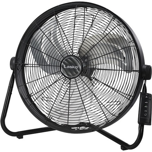 20" High Velocity Fan with Remote Control. Metal fan blades deliver maximum air movement. Convenient remote control. QuickMount system - converts easily from wall to floor use. All-metal wide body construction. Three powerful speeds. Rubber pads to protect surfaces. Pivots to direct air flow. Comfortable carrying handle. Front-mounted control for added convenience. Ideal for garages, basements, and more. Includes a patented, 3-prong fused safety plug. E.T.L. listed. 6 ft cord. Watts: 184(High). Black.