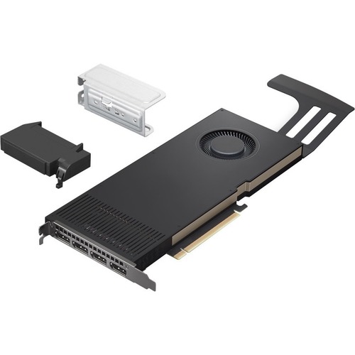The NVIDIA RTX A4000 professional graphics card is a single-slot, 9.5-inch PCI Express Gen4 graphics solution based on the state-of-art NVIDIA Ampere architecture. It is an actively cooled product capable of 140W maximum graphic power utilizing a single 6-pin PCIe connector for more flexible configurations. NVIDIA RTX A4000 delivers hardware-accelerated ray tracing, revolutionary AI feature, advanced shading, and powerful simulation capabilities to creative professionals