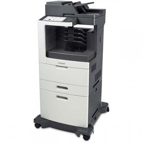 The Lexmark MX812dxme MFP with a customizable e-Task touch screen, 4-bin mailbox, 2,750-sheet standard input, 1GB standard memory and 320+GB hard disk provides print, copy, fax, scan and email functions.