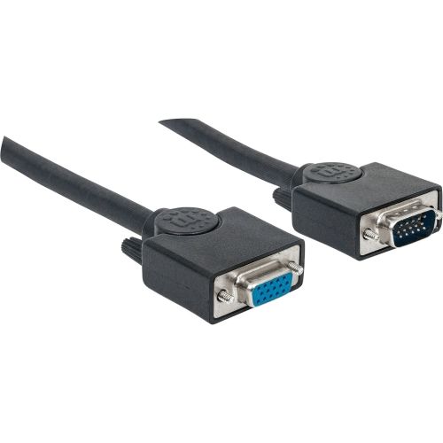 Reliable connections for superior signal quality. Manhattan SVGA Cables easily extend connections between a monitor and desktop or notebook computer. Ideal for use with video splitters, KVM switches and any HD15-equipped display, computer or device, Manhattan SVGA Cables are engineered and constructed of quality materials to deliver dependable transmissions in video applications. Full foil and braided shielding, molded boots with strain relief and mini-coax (RGB) and paired video wire construction help provide maximum conductivity and clear, crisp images with reduced EMI interference and distortion over extended distances.