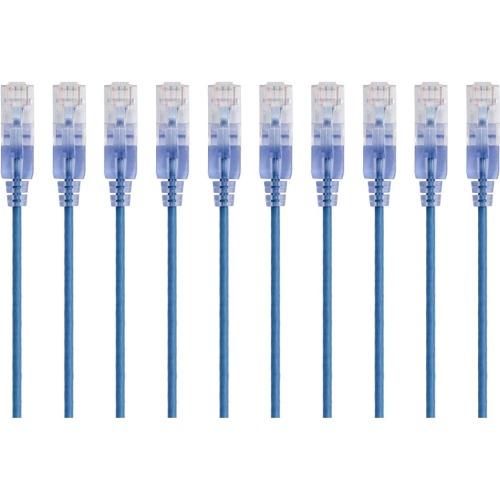 Monoprice 10-Pack, SlimRun Cat6A Ethernet Network Patch Cable, 7ft Blue - 7 ft Category 6a Network Cable for PC, Server, Printer, Router, Network Media Player, VoIP Device, PoE-enabled Device, Network Device - First End: 1 x RJ-45 Male Network - Second End: 1 x RJ-45 Male Network - Patch Cable - 30 AWG - Blue - 10