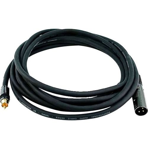 An XLR to RCA cable converts a balanced audio signal into an unbalanced signal. This is good for sending audio signals from an XLR source to an RCA input, or vice versa. Regardless of direction, the result will be an unbalanced signal. This is a premium quality cable with gold plated connectors at each end. The cable is made with two 16 AWG oxygen-free copper conductors, in a twisted-pair arrangement, and is shielded along the full length with copper braid with 97.5% coverage. This cable uses the standard pinout with pins 1 and 3 of the XLR connector wired to the shield of the RCA plug and pin 2 of the XLR connector wired to the tip of the RCA plug.