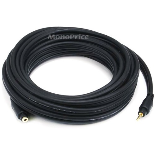 20ft Premium 3.5mm Stereo Male to 3.5mm Stereo Female 22AWG Extension Cable (Gold Plated) - Black The 3.5mm (1/8") stereo TRS connector is more commonly known as the Headphone Jack on portable mp3 players and mobile phones. This cable features a male 3.5mm stereo (TRS) plug on one end and a female 3.5mm stereo jack on the other end, each with molded connector housings and strain relief boots. Each connector is gold-plated to ensure smooth, corrosion-free connections. The cable is made of heavy-duty coaxial cable for each conductor. The conductors are 22AWG and each conductor is shield to prevent EMI or RFI interference from entering your audio system. The cable is 12mm x 6mm thick, while the connector housings are 41mm long x 15mm diameter. Because of their size and weight these cables are best suited for more permanent connections, such as from your PC to your sound system. If you want something more suitable for portable applications, please try one of our standard 3.5mm audio cables.