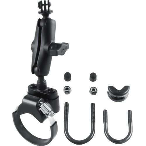 The RAM-B-149Z-2-GOP1U consists of a steel strap base, u-bolt bases, double socket arm and 1" diameter ball with custom GoPro® Hero adapter. The mount is designed with a RAM 1" diameter patented rubber ball and socket system that has adjustment points at both ends of the double socket arm; this allowing for almost infinite adjustment and perfect viewing angles. Designed for a clean installation, the RAM strap mount will accommodate most common roll bar sizes, allowing for the placement of the RAM rubber ball base. This mount can also be attached to smaller diameter handlebars on ATVs using the included hardware. The GoPro® Hero adapter attaches directly to the under-side of the camera, replacing the factory mounting bracket.