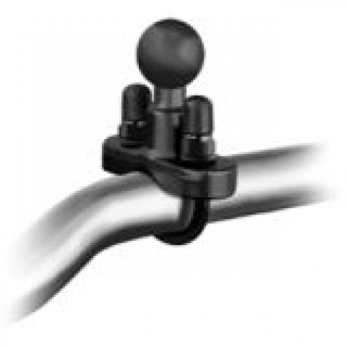 The RAM motorcycle handlebar base contains a 1" rubber ball designed to sit at right angles to the mounting rail. The rust proof metal u-bolt accommodates rails in diameter from 0.5" to 1" in diameter. Included are black cover caps to be placed over the exposed ends of the u-bolt and a composite adapter that can narrow the rail to a minimum width of 0.5".