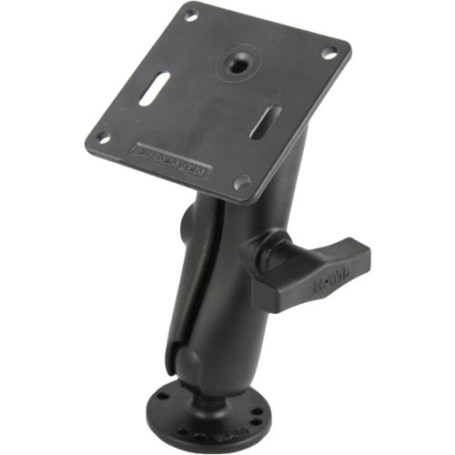 The RAM-101U-2461 consists of a double socket arm, 2.5" diameter round base with the universal AMPS hole pattern and 3.625" square plate with the VESA hole pattern. The VESA plate contains a 75mm X 75mm hole pattern. Designed into the mount is a 1.5" diameter patented rubber ball and socket system with adjustment points at both socket ends of the arm. Rubber ball and socket technology allows for almost infinite adjustment and perfect viewing angles.