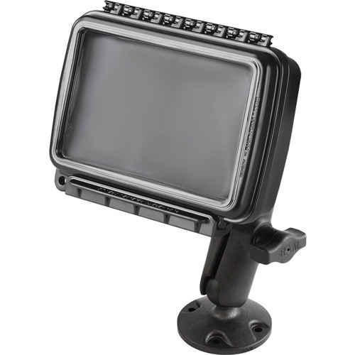 The RAP-B-138-AQ6 consists of a double socket arm, two 2.5" diameter round bases with the universal AMPS hole pattern and sealed enclosed medium/wide size AQUA BOX®. The mount is designed with a RAM 1" diameter patented rubber ball and socket system that has adjustment points at both ends of the double socket arm; this allowing for almost infinite adjustment and perfect viewing angles. The AQUA BOX® case provide sealed enclosure and protection for your handheld device. The clear, touch through screen allows you to view your electronics as well as use their function keys while in place. There is even a place for a small lock to serve as a theft deterrent. AQUA BOX® Internal Dimensions: Width=6" , Height=4" , Depth=1.75" inches AQUA BOX® External Dimensions: Width=6.5" , Height=5.25" , Depth=2" inches
