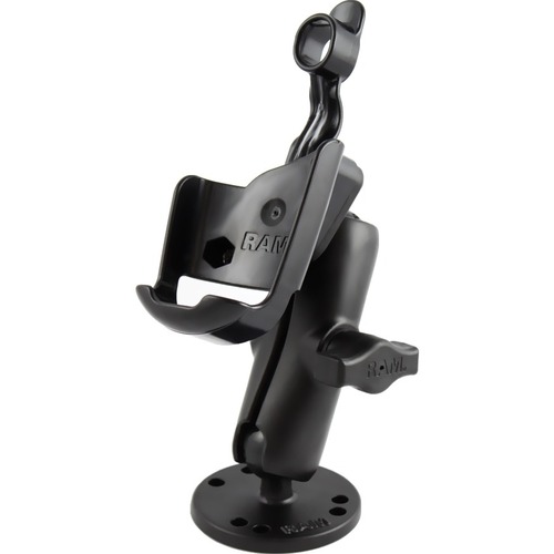 The RAM-B-138-GA12U consists of a 2.5" diameter round base with the universal AMPs hole pattern, standard length double socket arm, diamond adapter base and high strength composite cradle for the Garmin GPSMAP. The mount is designed with a RAM 1" diameter patented rubber ball and socket system that has adjustment points at both ends of the double socket arm; this allowing for almost infinite adjustment and perfect viewing angles.