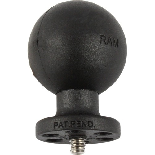 The RAP-366U, universal camera and camcorder base, consists of a 1.5" diameter rubber ball, connected to a round plate with 1/4"-20 camera thread. The round plate provides extra support and stability for cameras that rest on top of it. The male 1/4"-20 threaded steel stud will connect to any standard female thread found on camcorders and digital cameras.