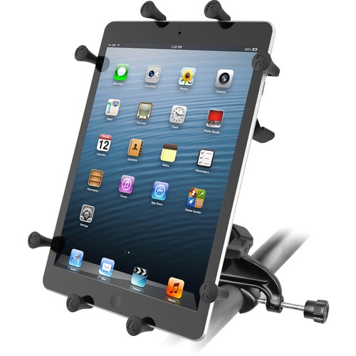 The RAM-B-121-UN9U consists of a yoke clamp base, double socket arm, round adapter base and universal X-Grip® III clamping cradle for 10" tablets. The RAM yoke clamp mount will fit rails from 0.625" to a maximum of 1.25". The 1" rubber ball is at a right angle to the plane of the mount; when connected to a rail, the ball sits parallel to the rail. The mount is designed with a RAM 1" diameter patented rubber ball and socket system that has adjustment points at both ends of the double socket arm; this allowing for almost infinite adjustment and perfect viewing angles. The X-Grip® III clamping cradle consists of a composite spring loaded cradle, expandable grip arms and additional bottom support keeper. Included are extra easy access grip knobs, located on the back of the cradle for quick release of your tablet. The X-Grip® III clamping cradle expands and contracts for perfect fit of most 10" tablets with or without sleeves, as well as some smaller tablets. Please verify dimensions of your tablet below for compatibility with the X-Grip® III.