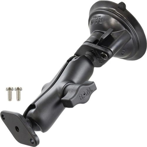 The RAM-B-166-LO4U, twist lock suction cup mount consists of a 3.3" suction cup locking base, socket system and connection hardware for the Lowrance AirMap and iWay. The mount is designed with a RAM 1" diameter patented rubber ball and socket system that has adjustment points at both ends of the double socket arm; this allowing for almost infinite adjustment and perfect viewing angles. Simply attach the suction cup base to the windshield of your vehicle for an easy and safe way to view your handheld device in your vehicle. High quality materials ensure your electronic device is safe, secure, and within easy reach. RAM''s patented design also dampens shock and vibration helping to extend the life of your mobile device.