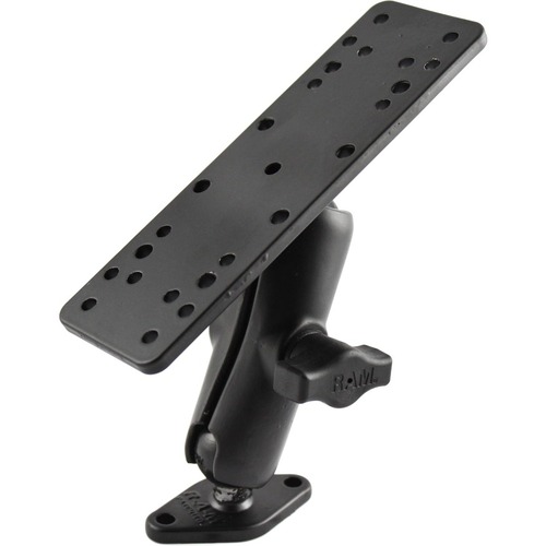 The RAM-B-111-238U consists of a double socket arm, 2.43" x 1.31" diamond base and 6.25" x 2" rectangle base. The diamond base contains two holes 1.912" from center to center, positioned at both ends of the base. The rectangle base contains different combinations of pre-drilled holes which will match up to many electronic devices and mounts, including Marine GPS, CB Radios, Ham Radios, Gimbal Brackets and more.