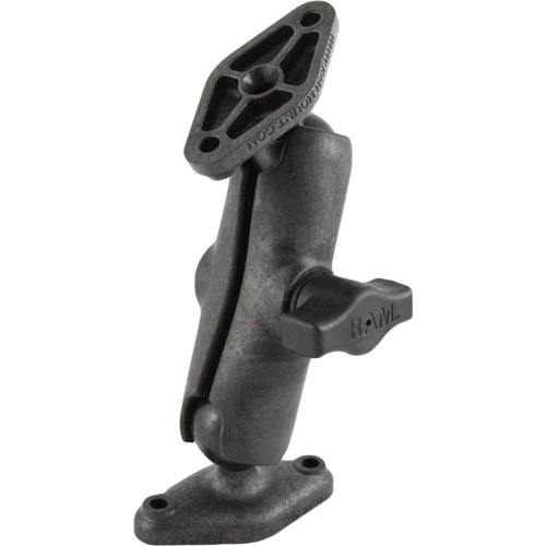 The RAP-B-102U consists of a double socket arm and two 1" ball diamond bases. The diamond bases contain two holes 1.912" from center to center, positioned at both ends. The hole pattern found on the diamond plate will connect to many RAM cradles, as well as third party cradles including mounts with the industry standard AMPS hole pattern.Overall Height:5"