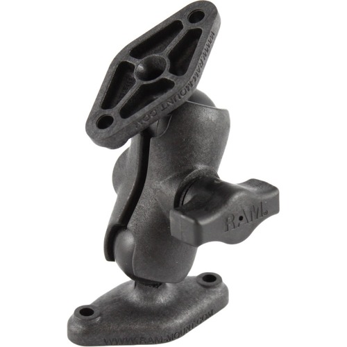The RAP-B-102U-A consists of a short double socket arm and two 1" ball diamond bases. The diamond bases contain two holes 1.912" from center to center, positioned at both ends. The hole pattern found on the diamond plate will connect to many RAM cradles, as well as third party cradles including mounts with the industry standard AMPS hole pattern.