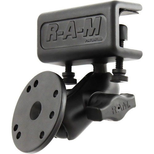 The RAM-B-177-202U consists of a glare shield clamp base, short double socket arm and round base that contains the universal AMPs hole pattern. This mount is designed to mount to the lip edge of a flat surface up to 5/8" thick. Popular mounting edges include a car side window edge lip or glare shield on an airplance. The base has two composite bolts that, when tightened, clamp the base to the lip surface. A RAM 1" diameter rubber ball is connected to the base allowing you to connect a RAM 1" diamter arm socket and connection plates to create the perfect mount for your application. The mount is designed with a RAM 1" diameter patented rubber ball and socket system that has adjustment points at both ends of the double socket arm; this allowing for almost infinite adjustment and perfect viewing angles.