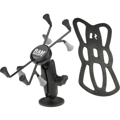 The RAM-B-138-UN8 consists of a 2.5" diameter round base with the universal AMPS hole pattern, double socket arm and universal X-Grip®clamping cradle for 7"-8" tablets. The mount is designed with a RAM 1" diameter patented rubber ball and socket system that has adjustment points at both ends of the double socket arm; this allowing for almost infinite adjustment and perfect viewing angles. The spring loaded X-Grip® cradle expands and contracts, allowing for a perfect custom fit of your 7"-8" tablet. Included are extra easy access grip knobs, located on the back of the cradle for quick release of your tablet. The X-Grip® includes a device tether recommended for outdoor applications. The cradle is compatible with handheld devices that will fit the dimensions listed below. It is important to verify the dimensions of your handheld device with a case/sleeve/skin when determining the overall size.