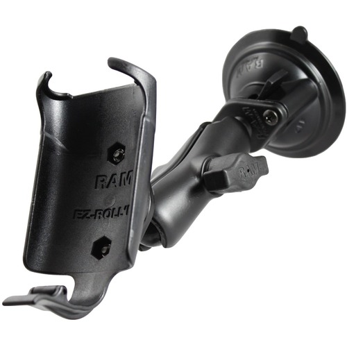 The RAM-B-166-GA27U consists of a 3.3" suction cup twist lock base, double socket arm and custom high strength composite cradle for Garmin Colorado devices. The suction cup base is designed to have a strong hold on glass and non-porous plastic surfaces, including RAM adhesive disks. The mount is designed with a RAM 1" diameter patented rubber ball and socket system that has adjustment points at both ends of the double socket arm; this allowing for almost infinite adjustment and perfect viewing angles.