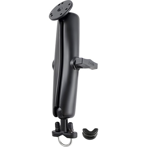 The RAM-231-D-202U consists of a stainless steel u-bolt base, 1.5" diameter LONG double socket arm and round base adapter that contains the universal AMPs hole pattern. Included in this package is hardware that will accommodate rails from 0.50" to 1" in diameter. The base includes black cover aps to be placed over the exposed ends of the u-bolt. The included composite rail adapter can narrow the rail to a minimum width of 0.5". The mount is designed with a RAM 1.5" diameter patented rubber ball and socket system that has adjustment points at both ends of the double socket arm; this allowing for almost infinite adjustment and perfect viewing angles.