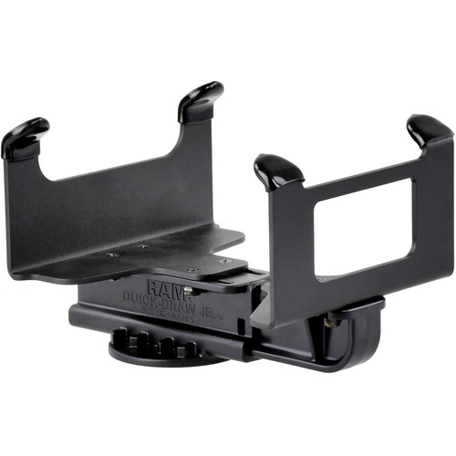 The RAM-VPR-105TU consists of dual steel brackets and stainless steel hardware, connected to a high strength composite spring loaded spine. The spring loaded mechanism allows for quick engagement and release of the Toshiba EP4 printer. This is a form-fitted cradle where the side brackets exposes access to all buttons, display screen and paper roll on the printer. The bottom of the spring loaded spine contains the universal AMPs hole pattern that will attachment to all RAM mounts that contain the same hole pattern.