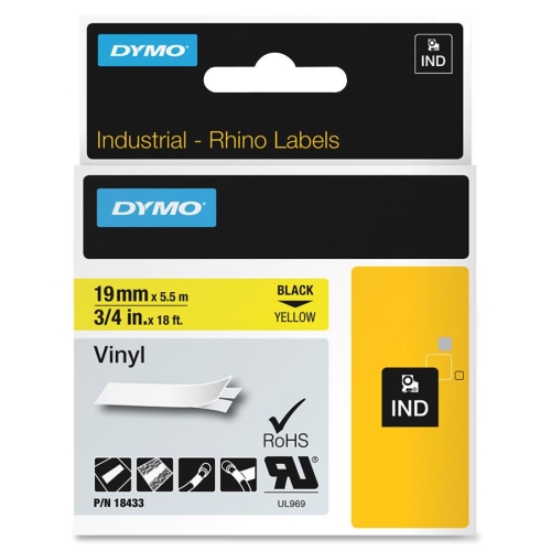Colored vinyl labels are a perfect solution for general labeling in and around a facility or where colored labels are required. Color-coding with black text gives a better visual recognition to your identification needs. These 3/4"" labels for industrial purposes are ideal for warning and safety messages, patch panels/faceplates and general labeling where color labels are required. Additionally, vinyl labels can be used outdoors in direct sunlight. Labels are compatible with Dymo Rhino 6500, 6000, 5200 and 5000.