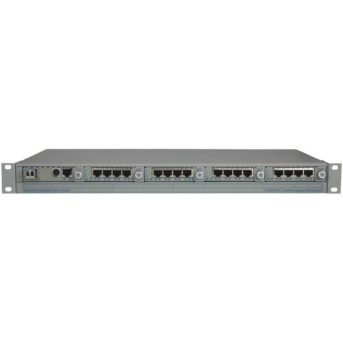 The iConverter T1/E1 MUX/M multiplexes up to sixteen T1 or E1 circuits and one 10/100/1000 Ethernet service onto a fiber optic transport link, and features remotely managed testing and configuration capabilities.The iConverter T1/E1 MUX/M operates in a back-to-back configuration, and can be used in applications such as multiple T1/E1 extension, mobile backhaul and building-to-building PBX connectivity.The T1/E1 copper interfaces are available in 4, 8, 12 or 16 RJ-48 port configurations for balanced T1/E1 applications. Optional adapter cables are available to convert each RJ- 48 interface to a BNC interface for unbalanced E1 transport applications.
