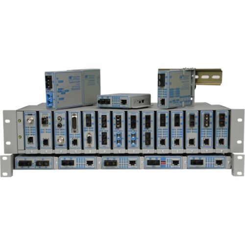 The FlexPoint Powered Chassis is a 19" rack-mount chassis that houses up to 14 standalone FlexPoint media converter modules. The redundant power supplies are essential where reliability is important, and in mission-critical applications to ensure continuous operation.Both of the universal AC or DC power supplies are hot-swappable and can be used in any combination. In case of a failure, a power supply can be hot-replaced while the second power supply supports the operation of the chassis.The power control logic of the Powered Chassis provides loadsharing between the power supplies, increasing reliability and operational lifetime. The control logic provides power monitoring and an LED display for each supply in order to assist in status monitoring, rapid fault-isolation and network management.The 14-Module Powered Chassis supports any combination of FlexPoint media converter modules which are individually secured and hot-swappable to ensure continuous operation.The FlexPoint Powered Chassis is a rack-mount 14-Module, power-redundant chassis for media converter modulesDual hot-swappable power supplies ensure continuous network operationLED displays provide network management with continuous power supply status monitoringSupports any combination of protocol-independent media converter modules and mixed media; saves space and makes installation and support easySupports all FlexPoint media converter modulesConverters are individually secured and hot-swappable for maximum connection reliabilityStandard 19" rack-mount dimensions allow spacesaving and convenient installationAvailable in AC and DC modelsCompletely software independent with no installation of drivers requiredPeace-of-mind reliability backed by a lifetime warranty and free 24/7 technical support