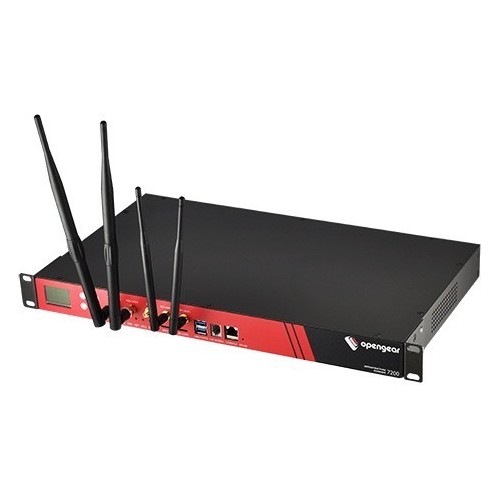 The Opengear IM7200 is a state of the art infrastructure management solution which streamlines remote management of network, server and power infrastructure in data center and remote environments, ensuring business continuity, secure and reliable access, monitoring teams. The next generation IM7200 combines Smart OOB™ out-of-band management with Failover to Cellular™ and delivers proactive monitoring and remediation. 8 - 48 port serial console server. Also available in 16 port + 24 USB 2.0 console ports and 16 port + 24 Gigabit Ethernet Switch Dual network connections with built-in Fiber SFP and GbE copper ports Software selectable serial pinouts PSTN, and optional 4G LTE cellular module for remote Smart OOB™ access during primary outage Failover to Cellular™ for out-of-band access Centralize the management of all your enterprise data centers and remote sites with Lighthouse 5 Integrated 802.11a/b/g/n Wi-Fi Integrated RESTful API engine on devices running firmware 4.0 or higher Zero Touch Provisioning (ZTP) automation over the network, without manual user interaction Link Layer Discovery Protocol (LLDP) discover, identify and verify attached devices on your local network. AAA including LDAP & TACACS+, lock down ports per user & group Enterprise grade security, FIPS 140-2 Validated encryption Unified power management of PDU and UPS equipment from 100+ vendors Environmental monitoring with optional EMD module Nagios and SolarWinds integration Audit trail logging to 16GB local storage or remote log server, expandable with SD card