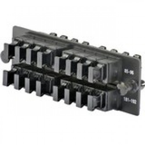 Opticom® MPO FAP loaded with sixteen (16) key-up/key-down MPO fiber optic adapters, oriented horizontally for Opticom® or Opticom® QuickNet™ Patch Panels and Fiber Enclosures, black.