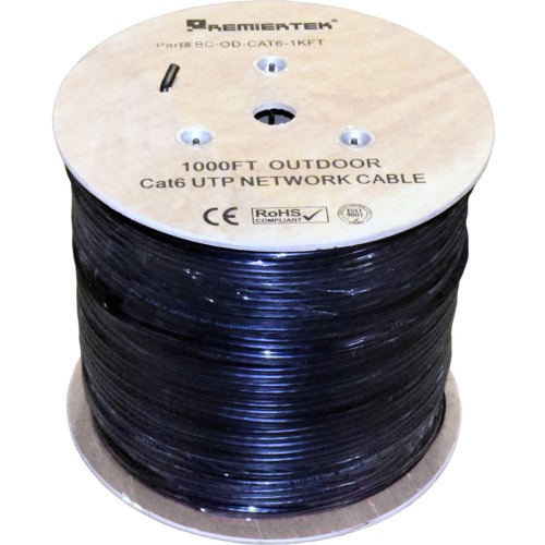 Premiertek 100% Pure Copper Direct Burial CAT6 UTP is used for applications that require the cable to be outdoors or directly in ground with or without the use of a conduit. Direct Burial CAT6 is made with a polyethylene (PE) jacket to protect the cable from water, and extreme temperatures. Four color-striped pairs make it easy to install and reduces alien crosstalk. This cable can be measured and cut to exact distances, then terminated to a connector, jack, or patch panel. This CAT6 cable is certified and fluke tested for gigabit Ethernet and 550Mhz.