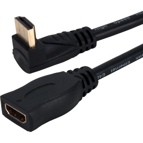 Eliminate cable bend & mount HDTV closer to the wall with HDMI angle flex adaptor. Features flexible cable with low profile connectors for tight space installation, and corrosion resistant gold contact & shielded to maintain signal integrity. This down-angle adaptor is for horizontal mounted HDMI ports only. Do not use this adaptor on computer screens or HDTV with left or right vertical mounted ports or down-mounted ports. This HDMI extension cable supports 1080p/1440p/2160p, 4k x 2k Ultra HDTV, 3D, Ethernet & Audio Return Channel, Multi-channel Digital Audio, Deep color/x.v.Color, HDCP and CEC controls. (Connectors: HDMI Angle-Male to Female; Length: 0.5ft)