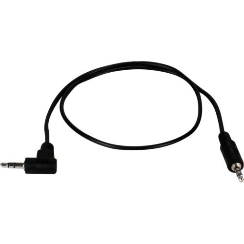 Connects smartphone, tablet, audio player, PC or any device with mini-stereo audio port to speaker or sound system. Its right-angle connector eliminates cable bend. This cable has PVC jacket, molded ends and inner hood soldered 360 degrees for complete end to end shielding. (Connector: 3.5mm Right-Angle Male to Regular Male; Length: 12ft)