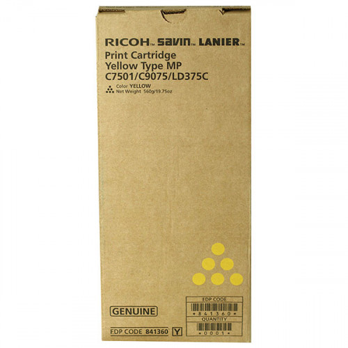 Ricoh Aficio MP C6501, C7501, Lanier LD365C, 375C, Savin C9065, C9075 Yellow Toner Cartridge (21,600 Yield). Save money, protect your investment and get precise performance every time with genuine, high-quality Ricoh parts and supplies.