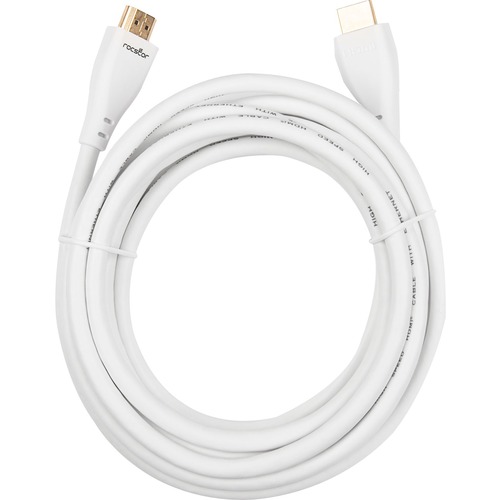 Rocstor Premium HDMI Cable with Ethernet - 4K/60Hz - 12 ft HDMI A/V Cable for HDTV, Cable Box, Satellite Receiver, Blu-ray Player, Computer, Projector, Gaming Console, Flat Panel Display, Monitor, Home Theater System, Audio/Video Device - First End: 1 x 19-pin HDMI Male Digital Audio/Video - Second End: 1 x 19-pin HDMI Male Digital Audio/Video - 18 Gbit/s - Supports up to 3840 x 2160 - Shielding - Gold Plated Connector - 28 AWG - White