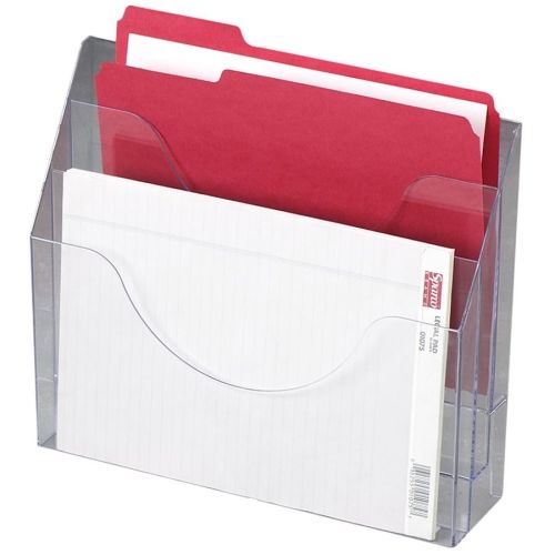 Three-tier organizer holds file folders, magazines and more and allows easy viewing of contents. Use in vertical or horizontal position. Wall-mountable organizer offers heavy-duty construction.
