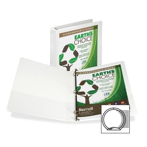 Samsill Earth''s Choice Round Ring View Binders - 1" Binder Capacity - Letter - 8 1/2" x 11" Sheet Size - 225 Sheet Capacity - 3 x Round Ring Fastener(s) - 2 Internal Pocket(s) - Vinyl, Cardboard, Polypropylene, Chipboard - White - Recycled - 1 Each - TAA Compliance