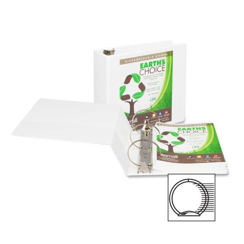 Samsill Earth''s Choice Round Ring View Binders - 5" Binder Capacity - Letter - 8 1/2" x 11" Sheet Size - 850 Sheet Capacity - Round Ring Fastener(s) - 2 Internal Pocket(s) - Polypropylene, Chipboard - White - Recycled - 1 Each - TAA Compliance