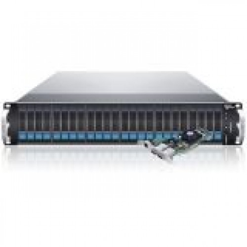 The EliteSTOR ES224X6+BHP is a 2U 24 bay 2.5" 6G RAID storage rackmount for high capacity storage solutions with support of 2.5" small form factor (SFF). The ES224X6+BHP is bundled with a high-performance dual core RAID controller card that offloads complicated RAID calculations from the computer or the enclosure to the dedicated RAID engine. High performance can be achieved with a lower cost of ownership compared to RAID embedded subsystems. RAID setup and maintenance can be controlled via built-in Web Browser interfaces, and the unit is supportive of e-mail notications and SNMP trap. Utilizing high bandwidth 2400MB/s mini-SAS (SFF-8088) cabling, the ES224X6+BHP supports 2.5" SSD or SAS or SATA hard drives to deliver superior read / write speeds that are crucial in performance-driven environments such as the video editing industry. The mini-SAS connection combines twenty-four hard drive connections into a single cables, reducing possible points of failures while preserving uninterrupted data transfer. A built-in SAS expansion port enables the system to connect up to 5 units or 120 HDD drives daisy-chained together. System status information such as the hard drive, power supply, and cooling fan status are provided by the LED. All necessary hardware comes standard including the mini-SAS cable, hard drive tray modules and built-in mounting rail. The ES224X6+BHP also supports SATA drives, allowing users the option to choose between high performance and high capacity storage solutions.