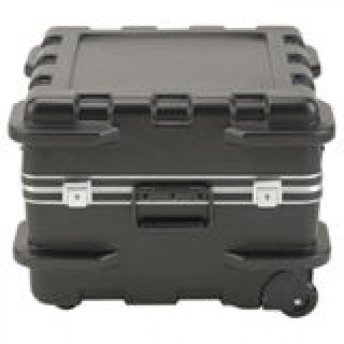 Telescoping, retractable pull-handle convenience combined with maximum strength and durability help this line of transit cases set a new industry standard. Molded of high density polyethylene with designed-in roller-blade style wheels. Molded-in bumpers defend these cases from impact damage.