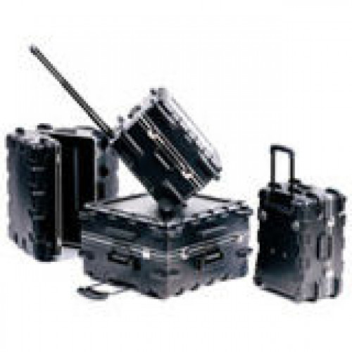 Telescoping, retractable pull-handle convenience combined with maximum strength and durability help this line of transit cases set a new industry standard. Molded of high density polyethylene with designed in "roller-blade" style wheels. Molded in bumpers defend these cases from impact damage.