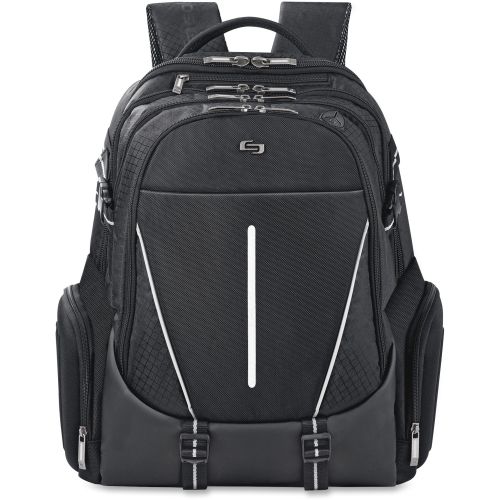 Solo Active Carrying Case (Backpack) for 17.3" Notebook - Black, White - Polyester Body - Handle, Shoulder Strap - 19" Height x 12.5" Width x 6" Depth - 1 Each