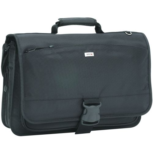 Messenger bag with a buckle closure features a fully padded, 15.6" laptop compartment to keep your device safely protected from bumps and scratches throughout your busy schedule. Full-size, zip-down organizer section offers a secure location to keep your files safely organized without worry. Whether it''s a short walk down the hall or long stroll across the city, you can travel in comfort using either the padded carry handle or adjustable shoulder strap. Handy back strap slides over the upright handles of luggage bags for consolidated travel. Main compartment expands 1" to increase your storage capacity as needed.