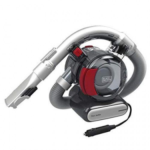 The Black & Decker BDH1200FVAV 12-volt Flexi Auto Vac features a unique integrated hose which allows you to reach all areas of your car where other hand Vacs cannot. The patented 'motor in the filter' technology allows the hand Vac to be ultra compact. It offers a long crevice tool for tight areas such as underneath and in between car seats. The combined crevice and soft brush is all in one tool for ease of use. This Vac has dual functionality - it can be used as a traditional hand Vac or the handle can be removed for hard to reach areas. Cyclonic action spins dirt away from the filter maintaining optimum suction power, and a filter cleaning wheel for easy and hands free cleaning of the filter. It also features a transparent dust bowl allows you to know when to empty the hand Vac, and the side empty door is an easy to empty system which means all the dirt goes straight in the bin and your hands don't touch the dirt. The 12V adapter fits into a cigarette lighter Socket, and a 16 feet cable allows you to reach all areas of your car including the boot cable, and can be easily wrapped around the car Vac before storing it away. Includes: integrated 4 feet flexible hose, 2-in-1 flip-up brush/wide nozzle tool, long crevice tool. Cleans vehicle dust, dirt and debris. Vacuums hard to reach areas such as underneath and in between car seats. Patented 'motor in the filter' Technology allows the Hand vac to be ultra compact. Grey/Red.