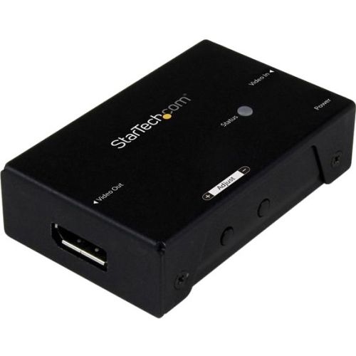 This DisplayPort signal booster lets you increase the signal strength of your DP video source using standard DisplayPort cables. You can achieve resolutions up to 4K at 60Hz, and depending on your desired resolution, the booster supports varying distances up to 65 ft. (20 m) away at 1080p 60Hz resolution. For inline installations, you can place the booster between two DisplayPort cables, up to 50 ft. in length at the video input, and up to 15 ft. in length at the video output.Maintains Ultra HD 4K video signalsWhen extending DisplayPort over long distances using standard video cabling, higher resolutions can become unavailable. Using the DP signal booster ensures that you can depend on UHD resolutions up to 4K at 60Hz at up to 22 ft. (7 m). You can achieve even greater distances with lower resolution support -- up to 4K at 30Hz, at up to 42 ft. (13 m), and 1080p at 60Hz at up to 65 ft. (20 m).Easy and discreet installationWith its small form factor, the DisplayPort booster is easy to hide, for a discreet installation. It includes mounting hardware, so installing it is hassle-free. By extending your video signal using standard DP cables, the DisplayPort booster is a cost-effective alternative to more expensive extension systems that require the installation of a CAT5 or CAT6 cabling infrastructure.Compatible with varying distances The booster makes it easy to adjust your DisplayPort signal strength based on the distance of your cables, with equalization adjustment buttons. This means that you can adjust the amplification of your DisplayPort signal, to ensure your DisplayPort signal will be flawless even at distances up to 65 ft. (20 m). Support for varying distances makes the booster perfect for multi-device deployment across large institutions, such as boardrooms in corporate offices, classrooms in schools, or waiting rooms in hospitals, as these applications may require varied distances in different rooms.The DPBOOST is TAA compliant and backed by a 2-year StarTech.com warranty with free lifetime technical support.