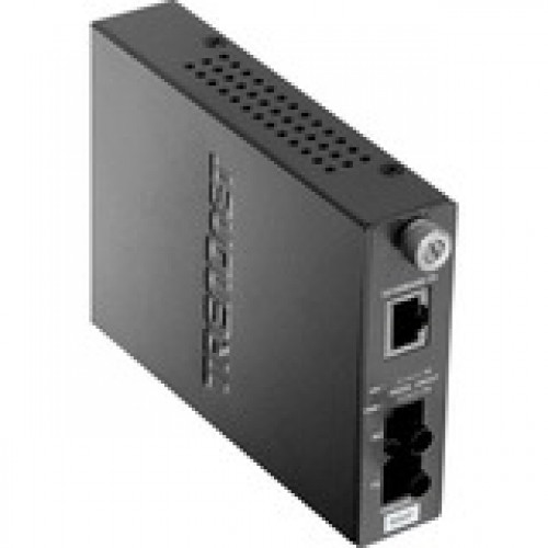 The TFC-110MST Fiber Converter works with the TFC-1600 chassis system or as a standalone unit. This converter is a Multi Mode ST-Type fiber converter spanning distances up to 2km (1.2 miles). Ports include 1 x 10/100Base-TX (RJ-45) port and 1 x 100Base-FX fiber port (ST-Type).